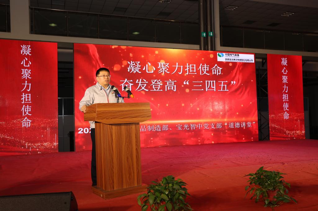 為提升廣大職工思想道德修養(yǎng),扎實(shí)推進(jìn)企業(yè)精神文明建設(shè),進(jìn)一步激發(fā)廣大干部職工齊心協(xié)力、干事創(chuàng)業(yè)、勇拓新局的信心和決心,以優(yōu)異成績完成“十四五”登高目標(biāo),12月8日下午,由寶光股份黨委主辦,滅弧室產(chǎn)品制造部黨支部、寶光智中公司黨支部聯(lián)合承辦的“凝心聚力擔(dān)使命,奮發(fā)登高‘三四五’”道德講堂活動(dòng)順利舉行。寶光股份黨委書記、董事長謝洪濤,寶光股份黨委副書記、總經(jīng)理劉壯出席會(huì)議并作點(diǎn)評講話。