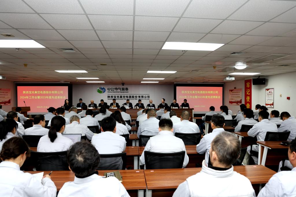 寶光股份黨委書記、董事長謝洪濤作工作報告;寶光股份黨委副書記、總經理劉壯主持會議,傳達學習了1月26日中國西電集團2024年工作會會議精神和要求;寶光股份紀委書記、工會主席姚書勤宣讀寶光股份2023年度先進個人及集體表彰的決定。