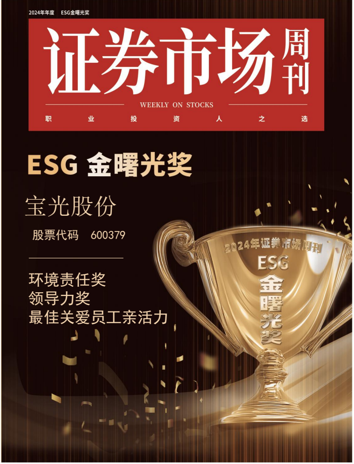 喜訊||寶光股份榮獲2024《證券市場周刊》“金曙光環境責任獎”“金曙光領導力獎”等三大獎項