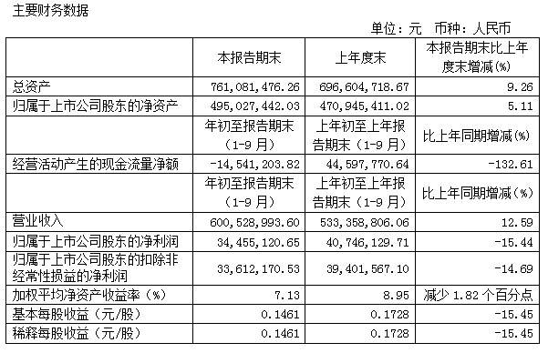 寶光股份2017年3季度主要財務指標