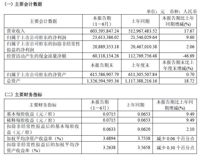 寶光股份2022年半年度主要財務指標